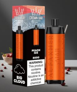 Al Fakher Crown Bar 8000 Crystal Disposable Vape Persikka-Jää – 8000 tupakkaa, 18ml, 5mg, Type-C