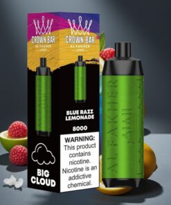 Al Fakher Crown Bar 8000 Crystal Disposable Vape Sininen Vadelma-Limonadi – 18ml, 8000 tupaa, 5mg