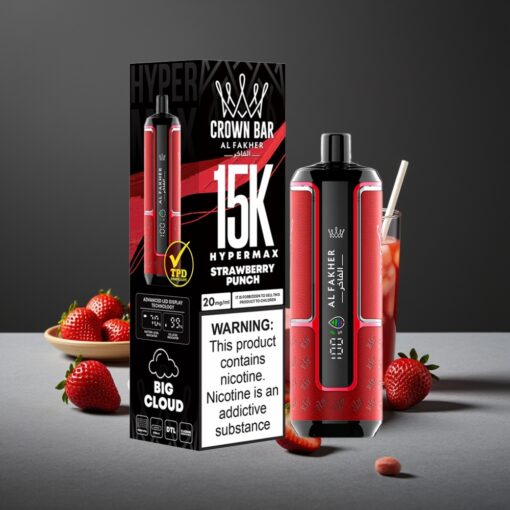 Al Fakher Crown Bar 15K Hypermax Disposable Vape Kit – Mansikkapommi, 22ml, 600mAh, 15K tupakkaa