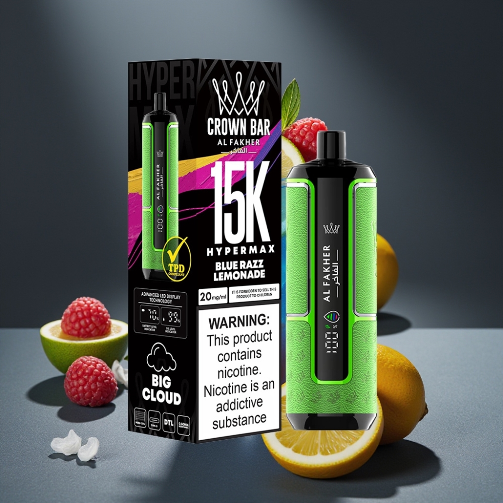 Al Fakher Crown Bar 15K Hypermax Disposable Vape Kit Sininen Vadelma-Limonadi – 22ml, 15K tupaa, 6mg/ml