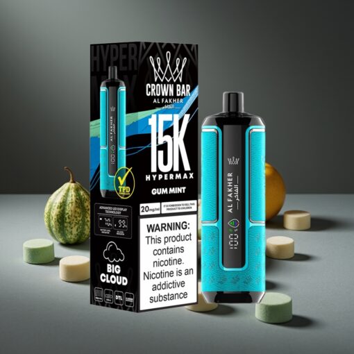 Al Fakher Crown Bar 15K Hypermax Kertakäyttö Vape Kit – 22ml, 15 000 tupaa, 6mg/ml, Gum Mint