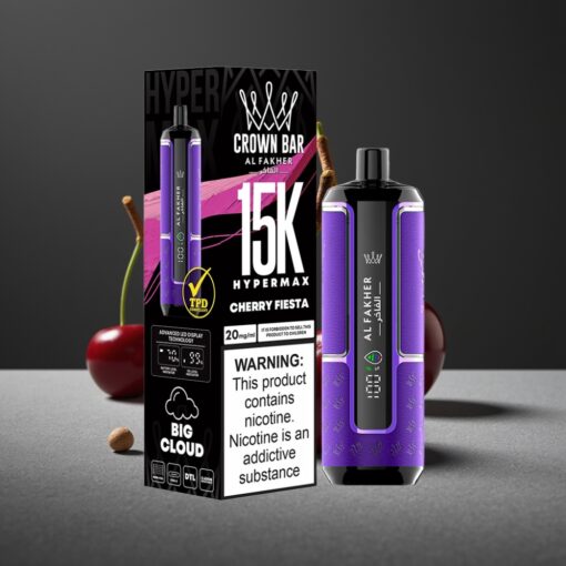 Al Fakher Crown Bar 15K Hypermax Kertakäyttö Vape Kit Kirsikka Fiesta – 22ml, 15000 tupaa, 6mg/ml