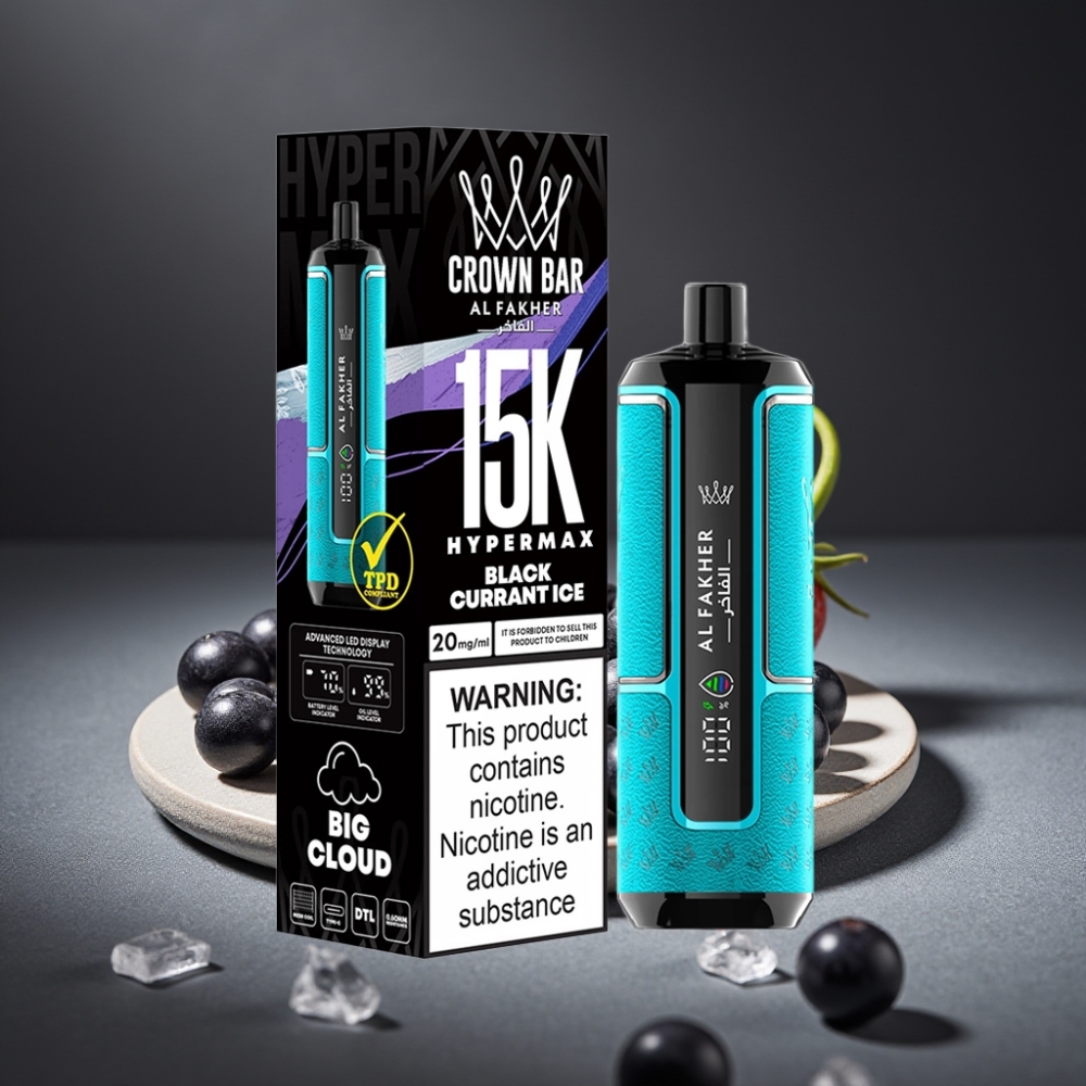 Al Fakher Crown Bar 15K Hypermax Kertakäyttö Vape Kit Mustaherukka-Jää 22ml, 600mAh, 15K tuhlausta
