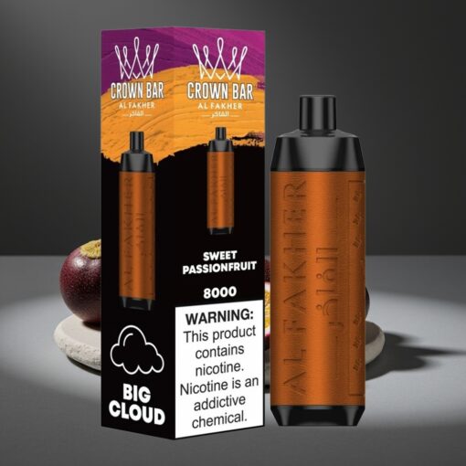 Al Fakher Crown Bar 8000 Crystal Disposable Vape – Makea Passiohedelmä, 8000 tupakkaa, 18ml