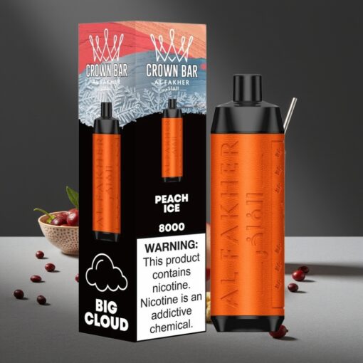Al Fakher Crown Bar 8000 Crystal Disposable Vape Persikka-Jää – 8000 tupakkaa, 18ml, 5mg, Type-C