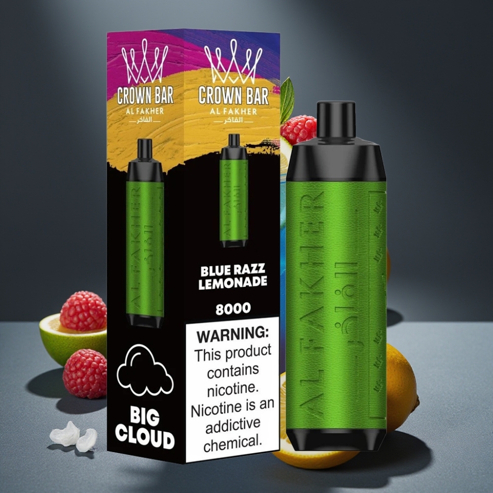Al Fakher Crown Bar 8000 Crystal Disposable Vape Sininen Vadelma-Limonadi – 18ml, 8000 tupaa, 5mg