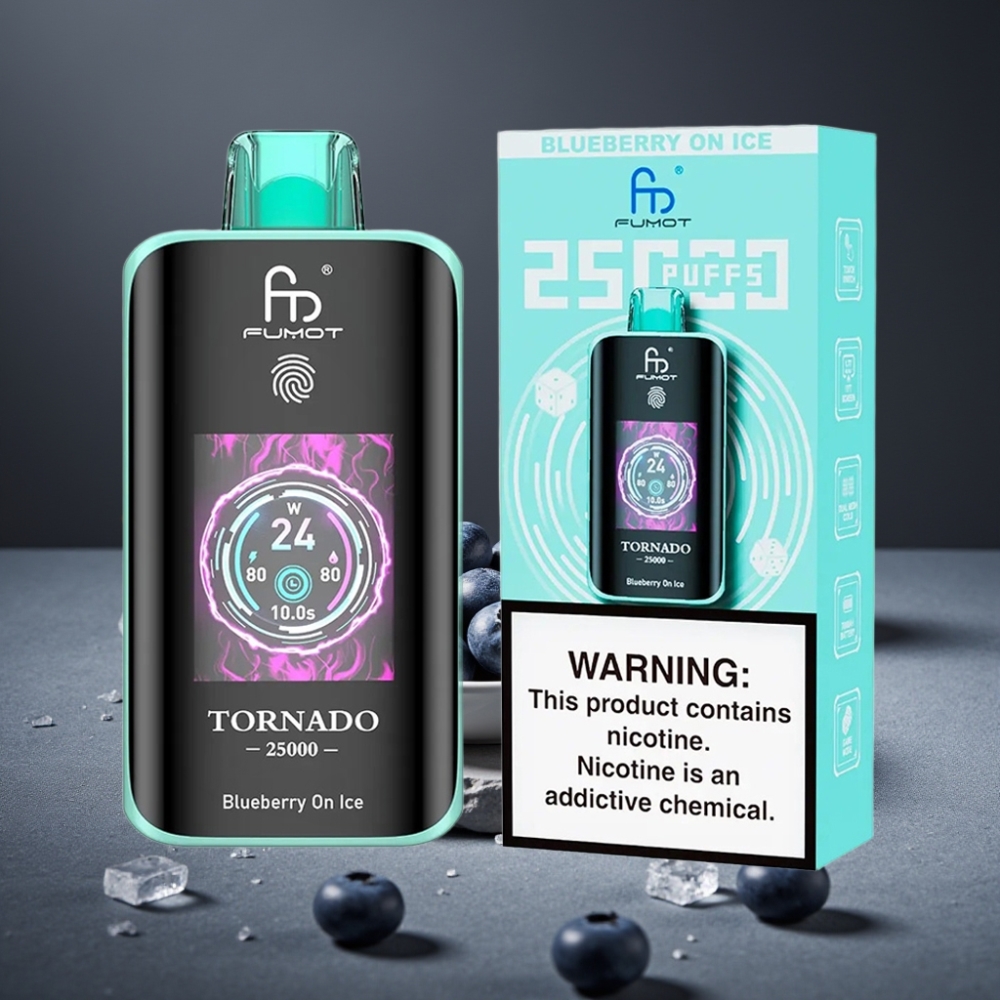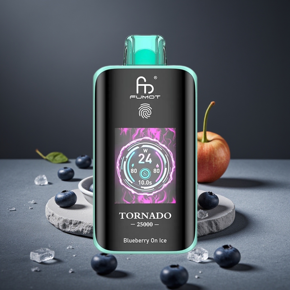 Fumot Tornado 25000 Puffs Mustikka Jää – HD-näyttö, 700mAh, 20ml, Type-C
