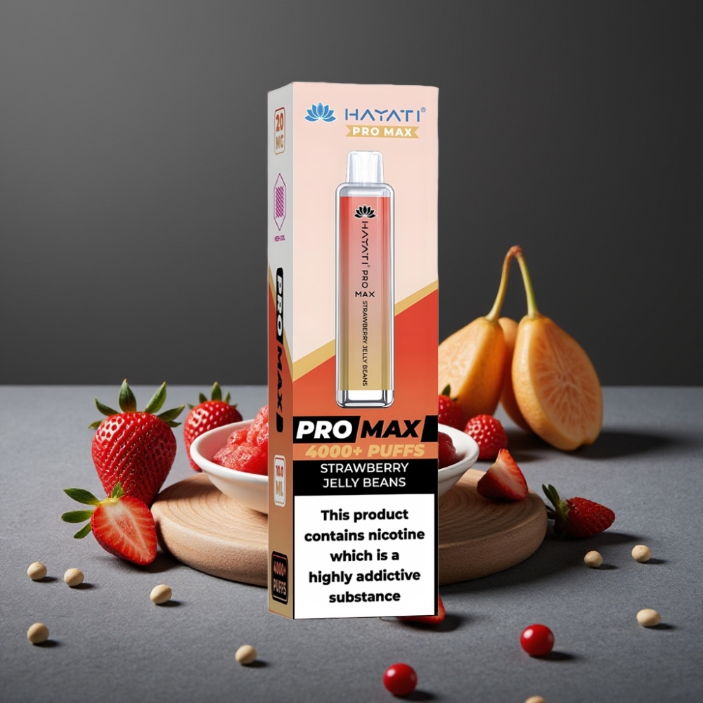 Hayati Pro Max 4000 Puffs Disposable Vape Mansikka-Hyytelöpapu 2%/5%, 1400mAh, 2ml/10ml