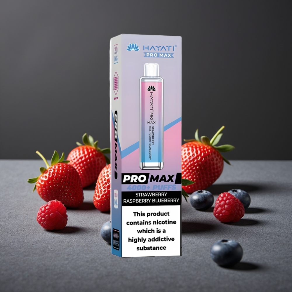 Hayati Pro Max 4000 Puffs Disposable Vape Mansikka-Vadelma-Pensasmustikka 2-5% Nikotiinia, 1400mAh